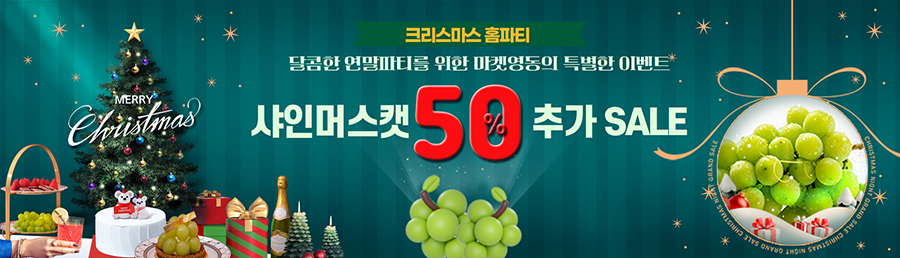 크리스마스 홈파티에 빠질수 없는 달콤상콤한 영동 샤인머스캣! 회원님들의 달콤한 연말파티를 위해 마켓영동이 준비하였습니다.